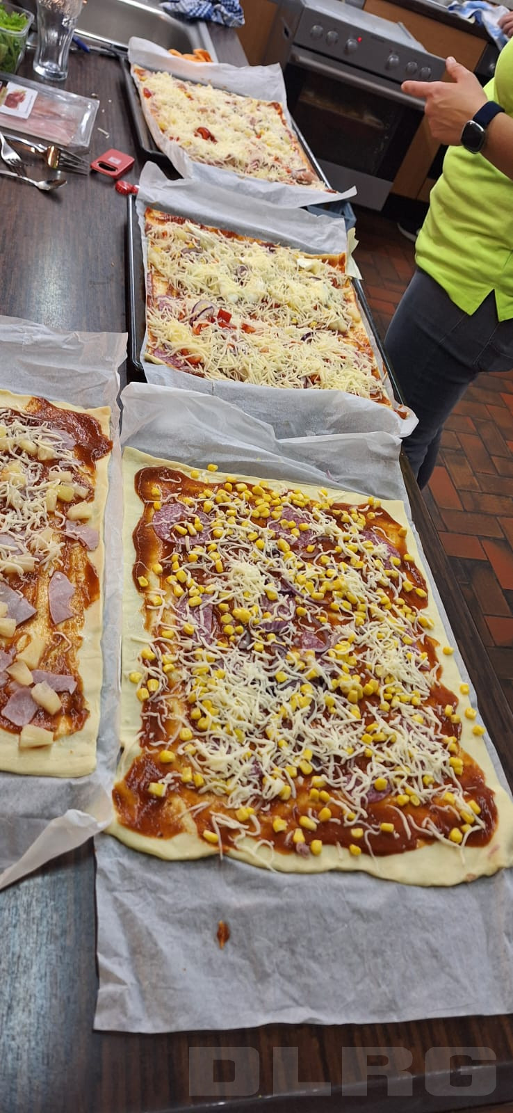 Bevor der erste Film startete, wurden die Pizzableche mit dem Teig vorbereitet. Jeder durfte sich sein Stück Pizza nach eigenem Wunsch belegen.